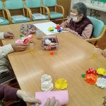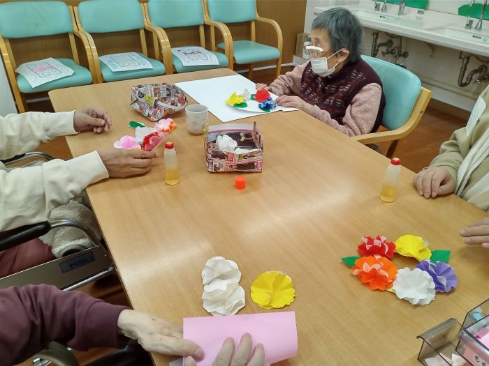 それぞれ好みの色の折り紙を選び、スタッフや周りの方々と協力しながら無事完成!