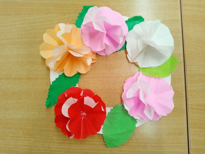 憩いの里でも春の訪れを感じてもらいたいと「お花のリース」を作ることに…