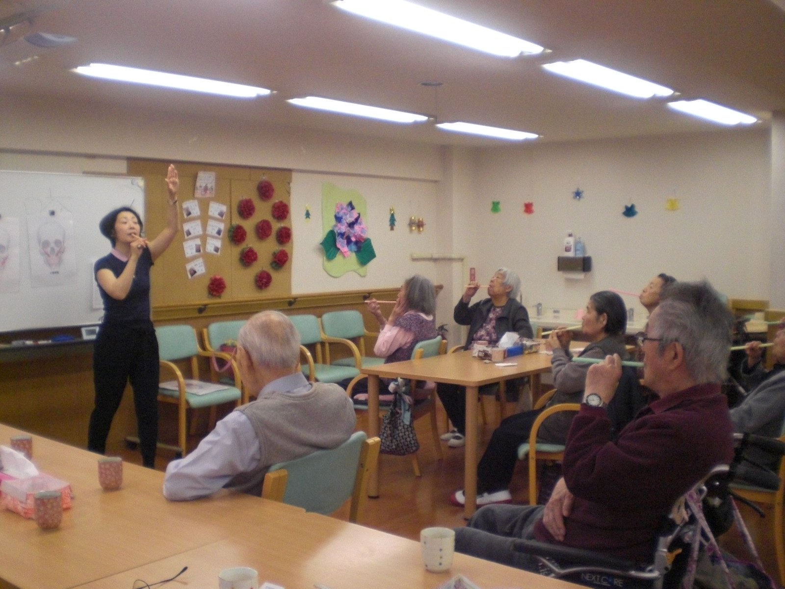 音楽祭を行いました。スタッフによるピアノやギター、ゲスト出来て下さったかたのフルートなどの生演奏で昭和の歌謡曲を皆様と一緒に歌いました。昔を思い出しながら皆様と楽しいひと時を過ごす事ができました。皆様からは「若い頃に戻ったようだ」「久しぶりに大きな声で唄えた」などのお声を頂きました。