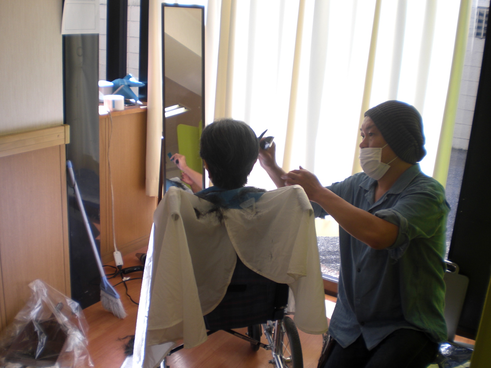 理美容サービスを行いました。ご利用者様から毎回ご好評で「デイサービスにきてくれて、とても助かる」「とても、きれいになった」などのお言葉をいただき皆様まんぞくしていただけたご様子でした。今後も美容師さんの協力を得てサービスを継続していきたいと思います。
