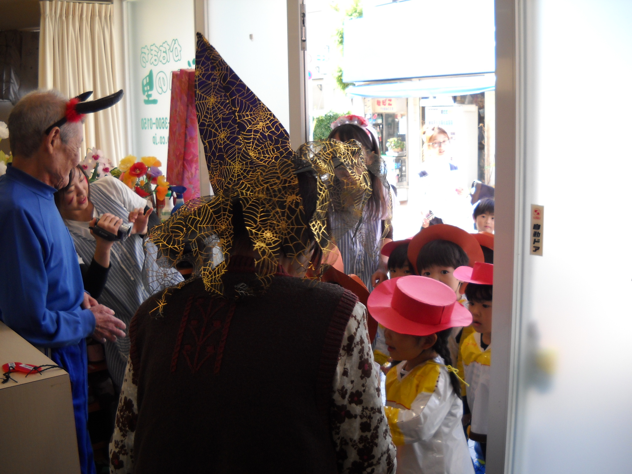 10月31日ハロウィーンには近所の保育園の園児が遊びに来てくださいました。ご利用者様達も仮装に参加され、園児との交流を楽しまれておりました。可愛らしい仮装で施設前の通りが賑やかになり、施設内も笑顔で満ち溢れました。